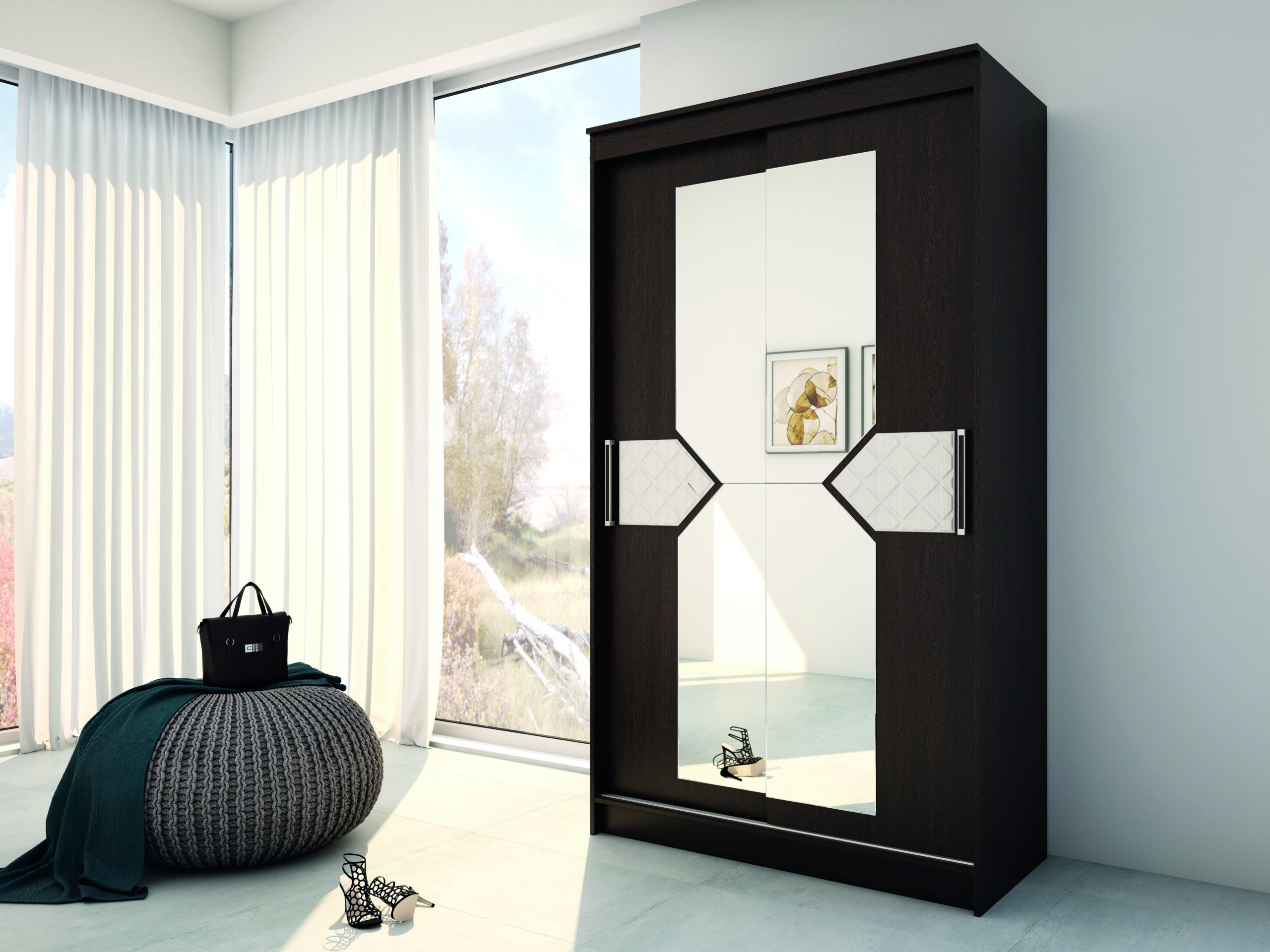 • геометрические элементы на фасаде придают шкафу индивидуальность и добавляют современный акцент в интерьер;
