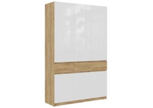 В шкафу расположены три секции. За левой дверью расположены четыре полки для одежды и белья. За центральной и правой дверью расположена секция со штангой и шляпная полка.  Средняя дверь прорезная, с внутренней стороны закреплено зеркало серебро толщиной 4мм.