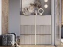 Удобная и стильная обувница «Пандора» может стать незаменимой частью вашей прихожей. Трендовые МДФ-фасады с декоративной вертикальной фрезеровкой – продолжение индивидуальности коллекции.
