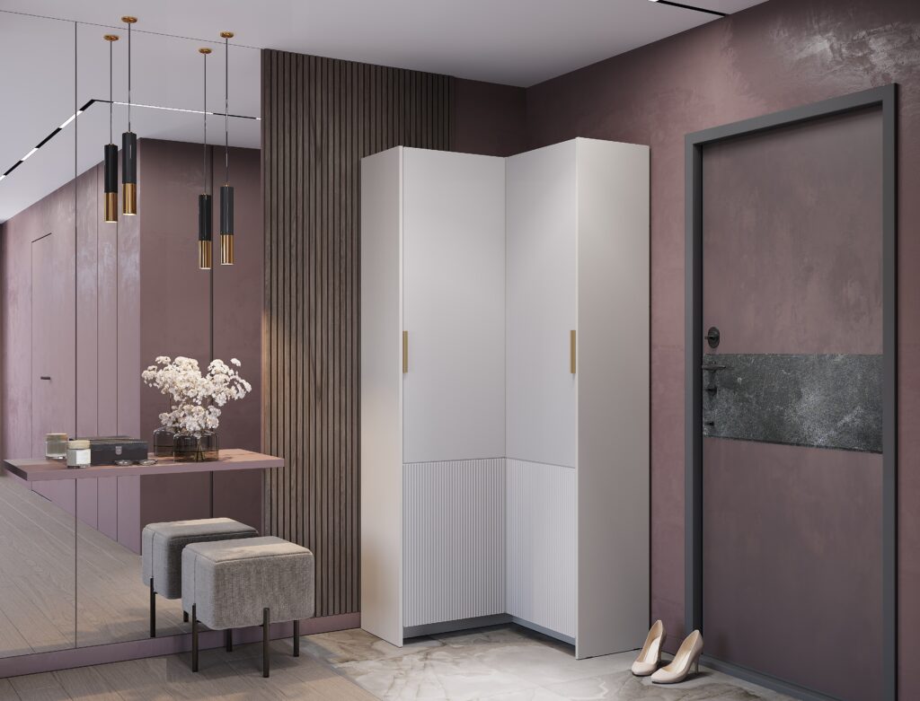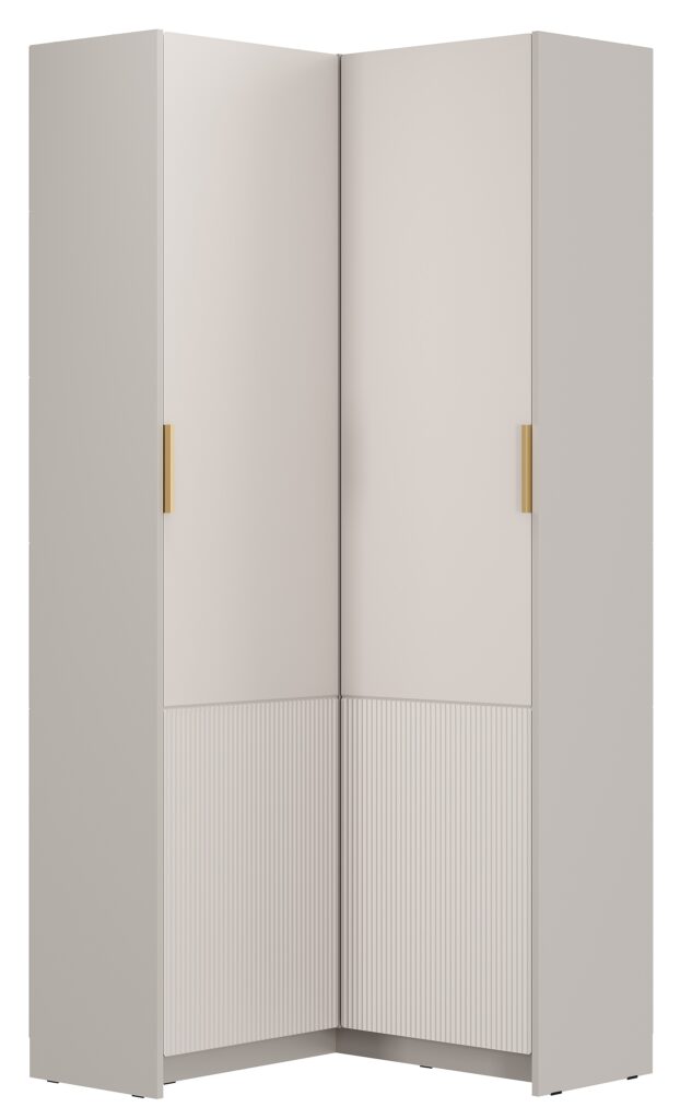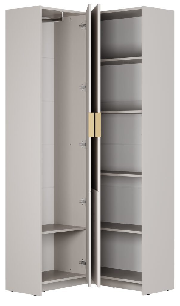 Угловой шкаф «Пандора» позволяет эффективно разместить нужные вещи, экономя место в квартире. Толщина кромки — 0,45 мм. Ручка — пластик, цвет «пыльно-матовое золото». Опоры — подпятник. Петли — 4-х шарнирные вкладные+4-х шарнирная 180°. Крепление к стене — навес L-образный. Максимальная нагрузка на вязку — 10 кг, на штангу — 10 кг. Модульная коллекция «Пандора» — это сочетание самых модных тенденций в дизайне мебели. Нежные оттенки «айриш» и «кашемир» создадут атмосферу уюта в любом интерьере. В коллекции собраны разнообразные модули для хранения вещей, которые адаптируются под ваше пространство.