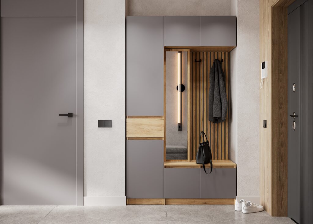 Главная Каталог Прихожие Модульные решения Прихожая Бостон Лайт Дуб крафт золотой/Серый шифер ЛДСП