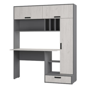 под вместительной столешницей расположилась открытая полка, на которой можно хранить необходимые для работы и учебы вещи,