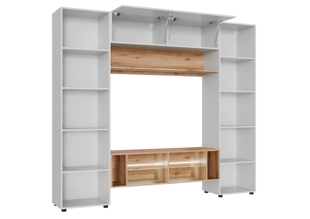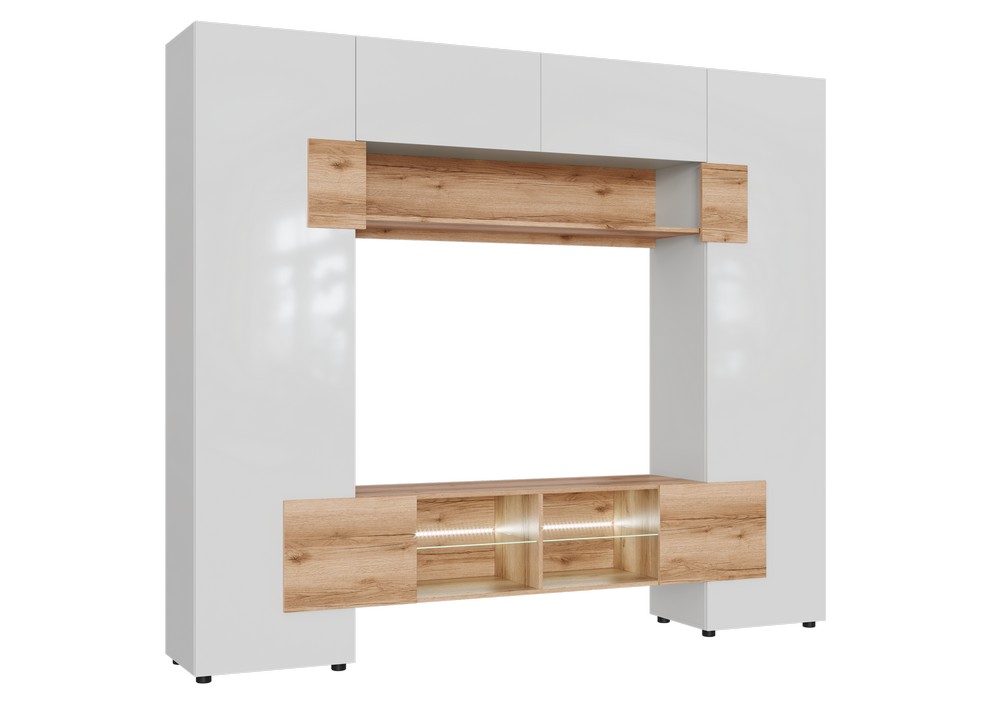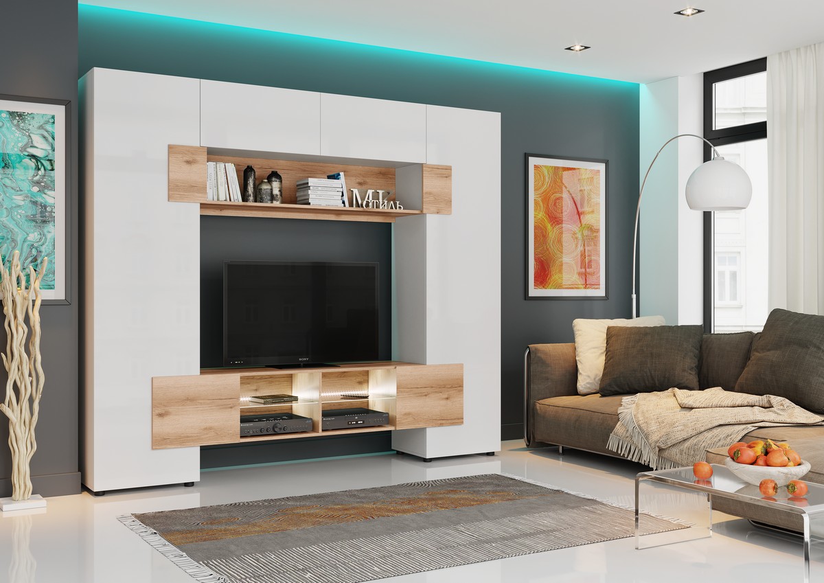 Главная Каталог Гостиные Готовые решения РИВЬЕРА НМ Стенка Белый /Дуб Крафт золотой /глянцевая Белый