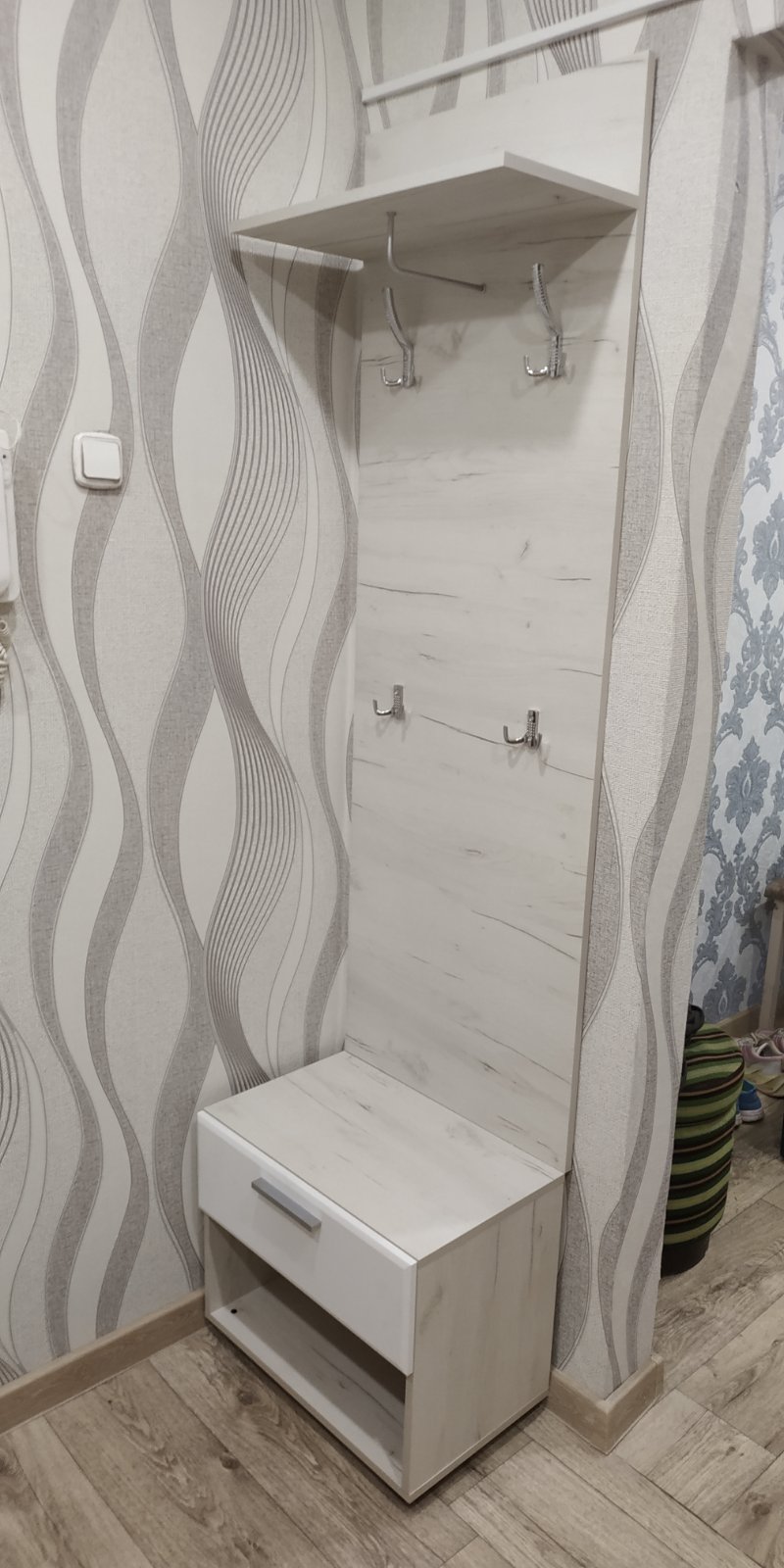 • Вешалка навешивается на стену с помощью четырёх врезных креплений