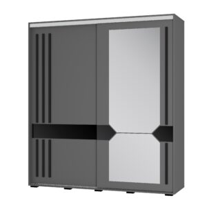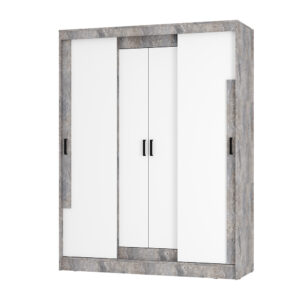 Шкаф-купе «Сакура» выполнен в едином стиле с остальными модулями одноимённой мебельной серии. Он сделан из ЛДСП высокого качества в комбинации цветов «сонома» и «белый», раздвижные дверцы декорированы темными полосами и дополнены удобными ручками. Внутри модель содержит все необходимые зоны для хранения одежды и обуви: отделение для плечиков, а также полки и ниши для остальных вещей.