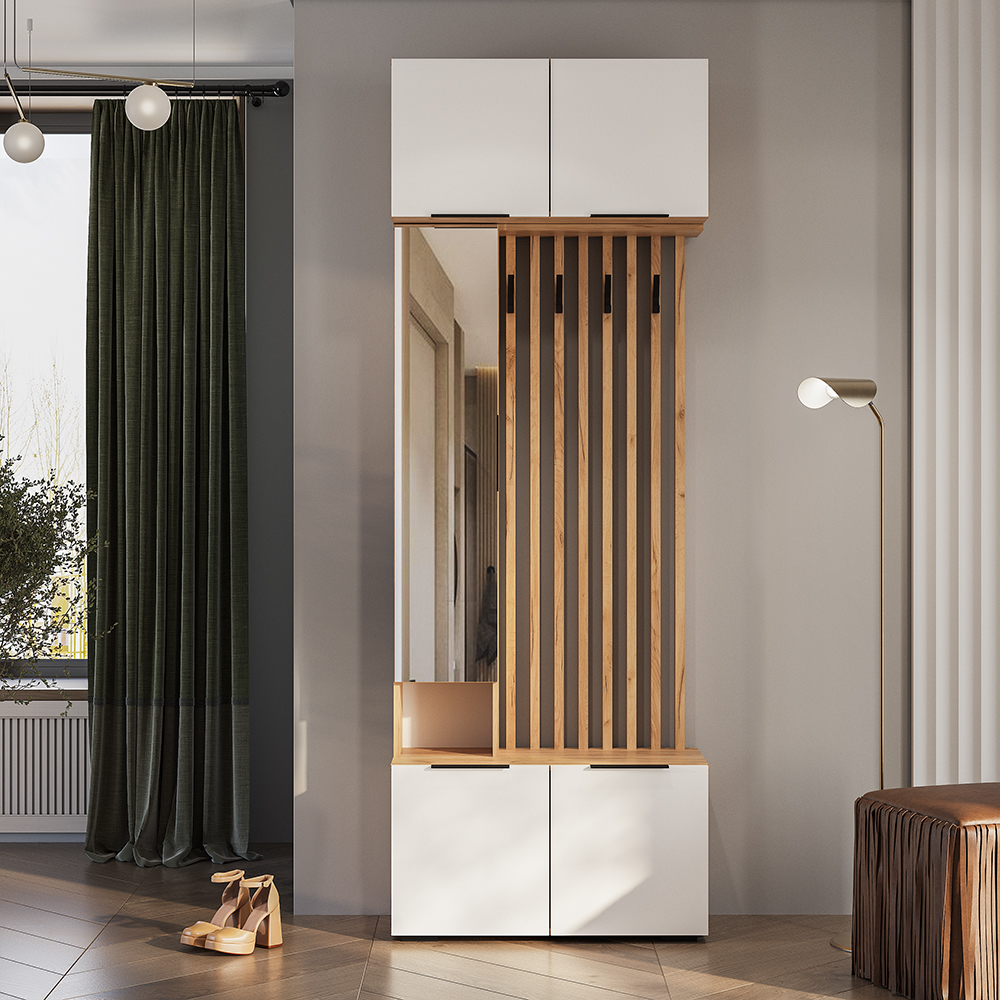 ШКН-02 может использоваться как самостоятельная модель и как надстройка для шкафа ШК-04 либо для прихожей ПР-03.