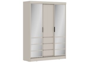 Шкаф-купе «Симпл» (ШКК-06) — вместительная и эстетичная модель для тех, кто предпочитает лаконичные интерьерные решения. Шкаф оснащен удобными ящиками и полками, а также пространством для вертикального хранения вещей. Вам не придется покупать большое зеркало, ведь фасад этой модели оснащен зеркалами с еврокромкой в комплекте, которые клеятся на фабрике. Направляющие у крайних створок СТ.