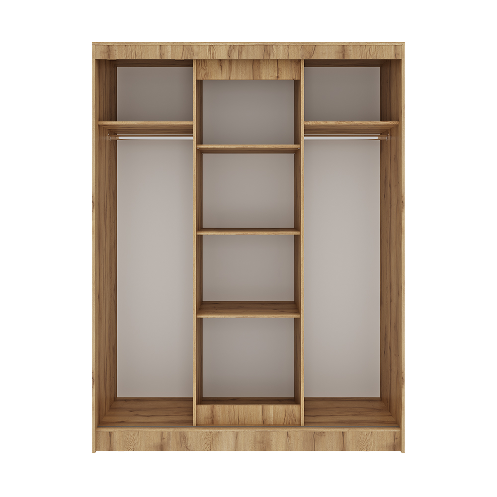 Шкаф-купе «Смарт» — это нестандартный эргономичный фасад, включающий в себя две системы открывания секций (купе, распашные створки), две просторные вертикальные секции для верхней одежды со штангами, вместительная центральная секция с полками, оригинальный дизайн и сочетание декоров, малые габариты, простота конструкции, удобство хранения.