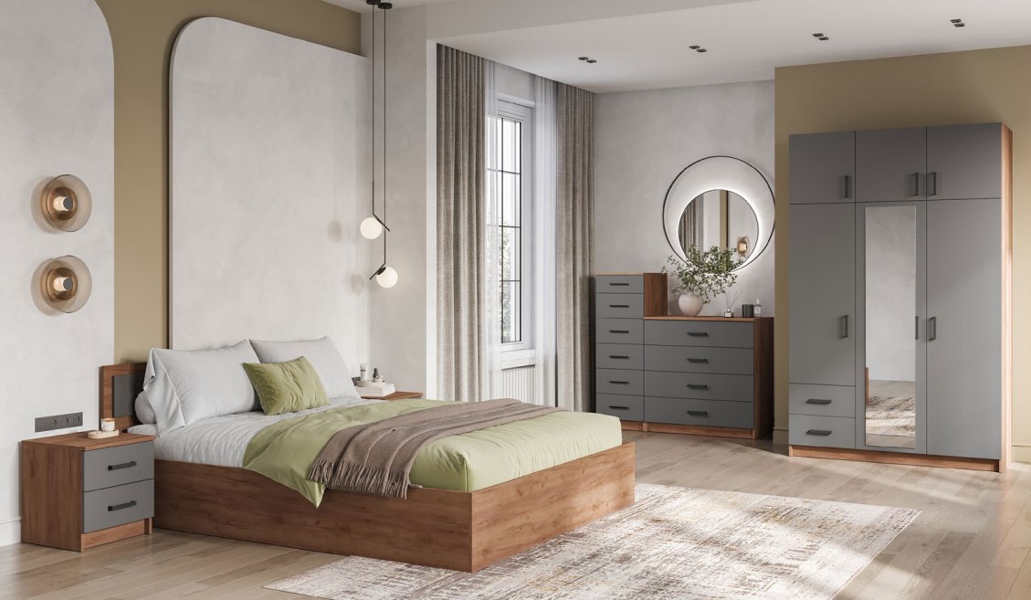 Спальный гарнитур «Аура» Дуб крафт табачный/Графит