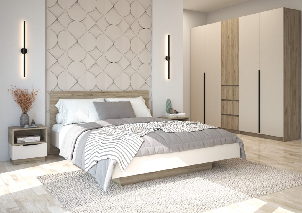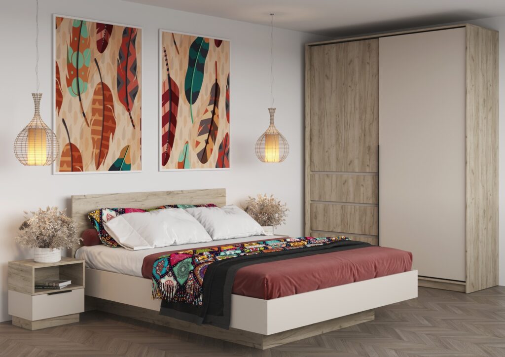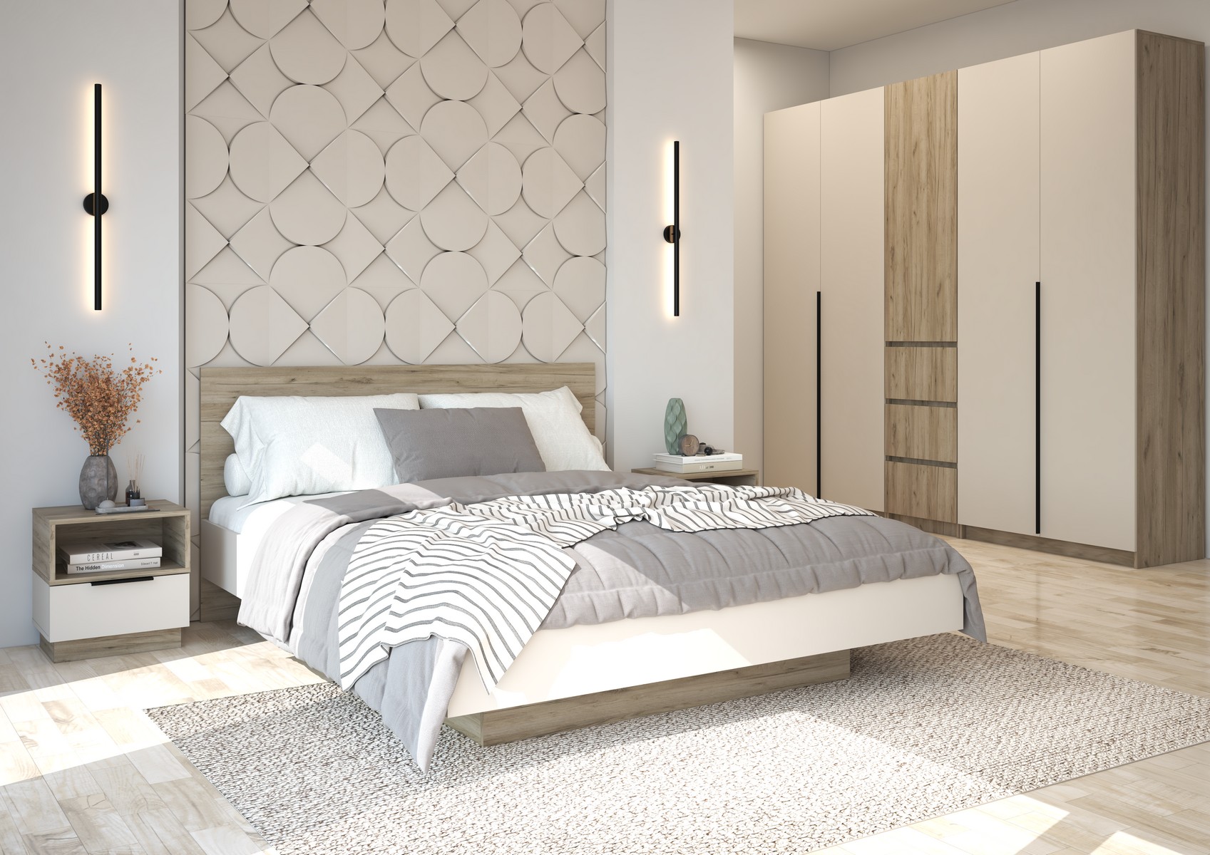 Главная Каталог Спальные гарнитуры Спальный гарнитур "Бохо" Дуб крафт белый/кашемир
