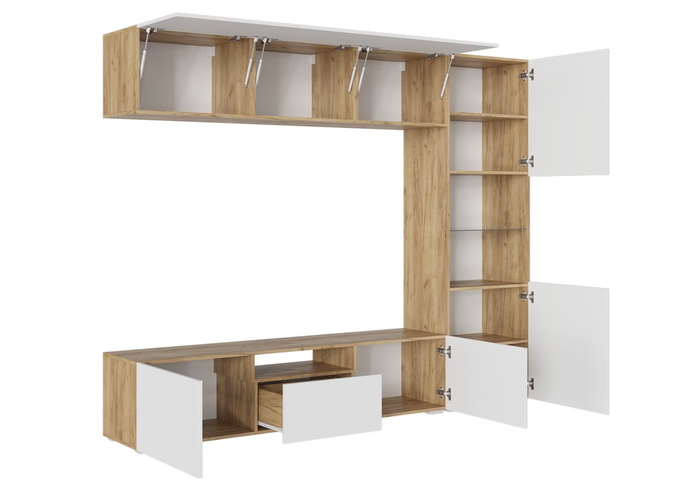 Главная Каталог Гостиные Готовые решения СТЕНФОРД НМ Стенка МДФ Дуб Крафт золотой/Софт белый