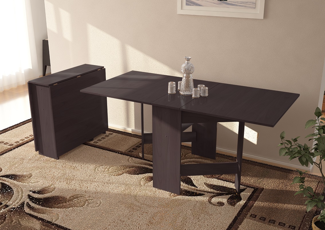 Главная Каталог Малогабаритная мебель Обеденные столы Стол книжка №3 (СТ-003) (1630х800 в разложенном) Венге 285х750х800