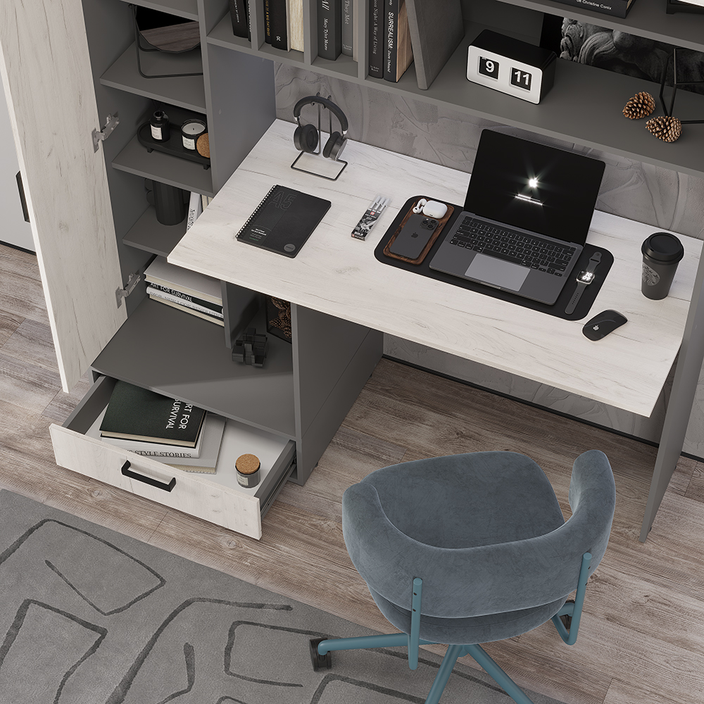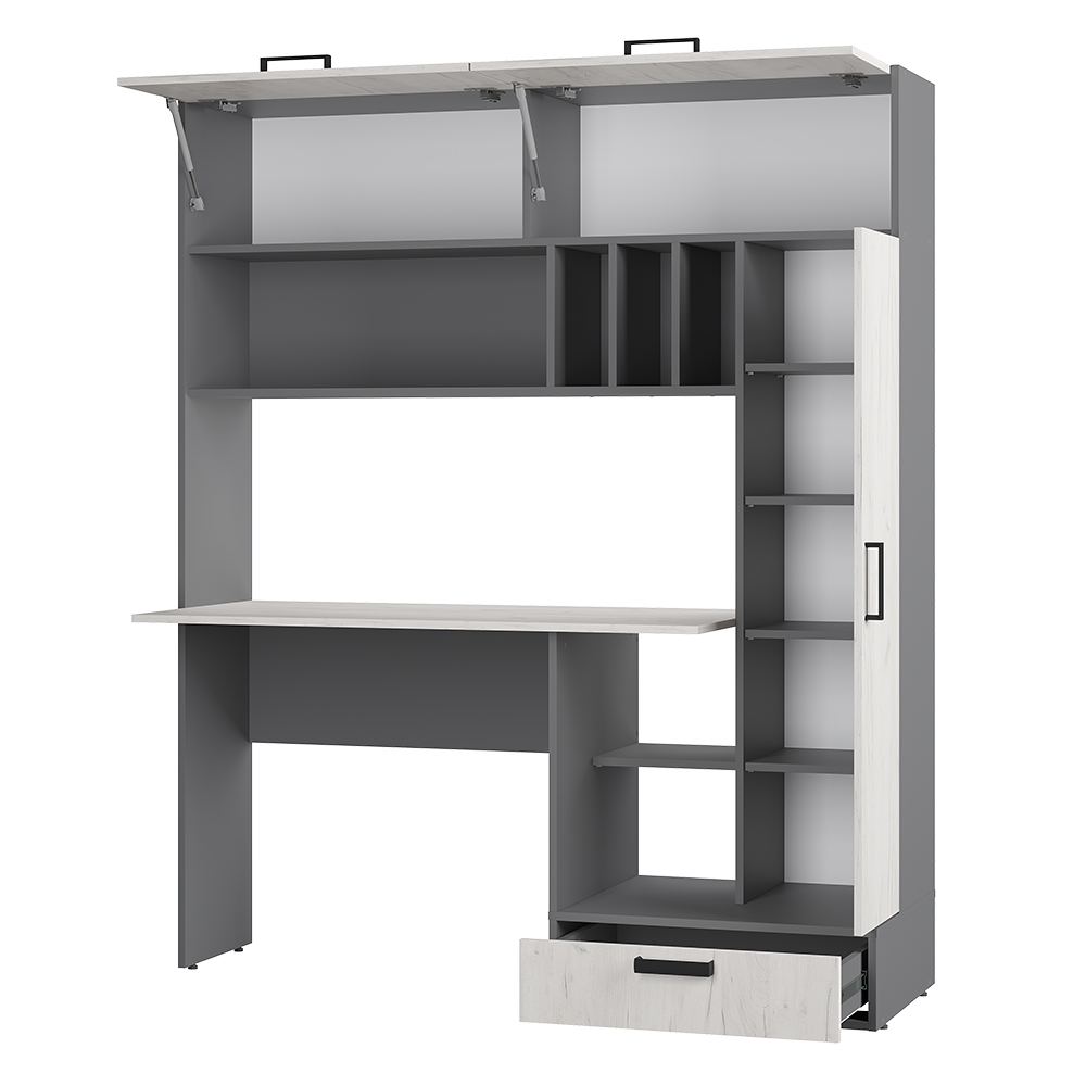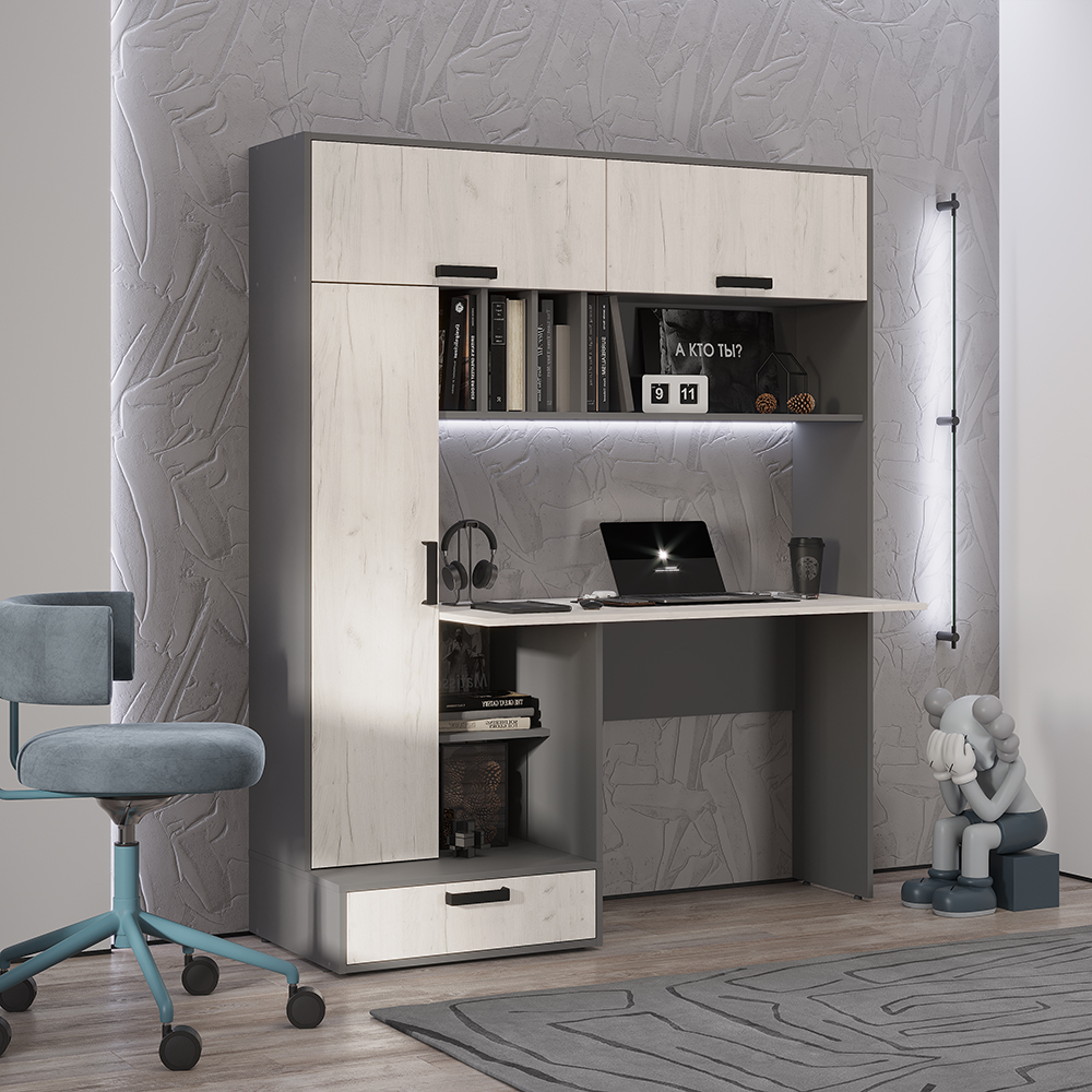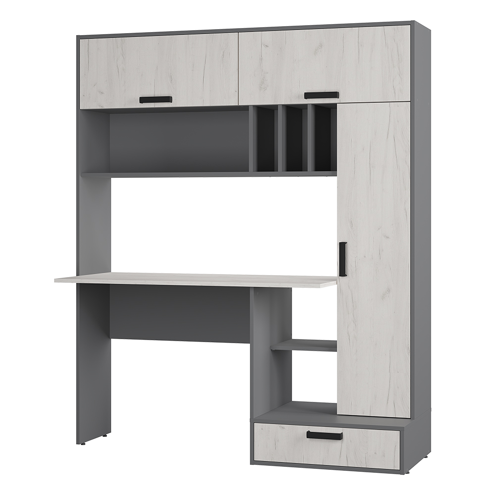 Стол письменный «Техно» — многоуровневая функциональная конструкция. Большое количество мест для хранения. Трендовое сочетание оттенков исполнения, современный внешний вид. Уникальное сочетание конструктивных компонентов, позволяющее использовать модель для различных целей. Большая вместительная столешница, обеспечивающая комфорт при работе.