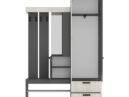 Изящная и практичная конструкция. Вместительный и компактный шкаф с отделением для верхней одежды и выдвижными ящиками. Удобная подставка под обувь (металлическая труба). Эргономичная основная секция с крючками для одежды, полками для мелочей, зеркалом и одним закрытым отделением. Контрастное исполнение в трендовых оттенках.
