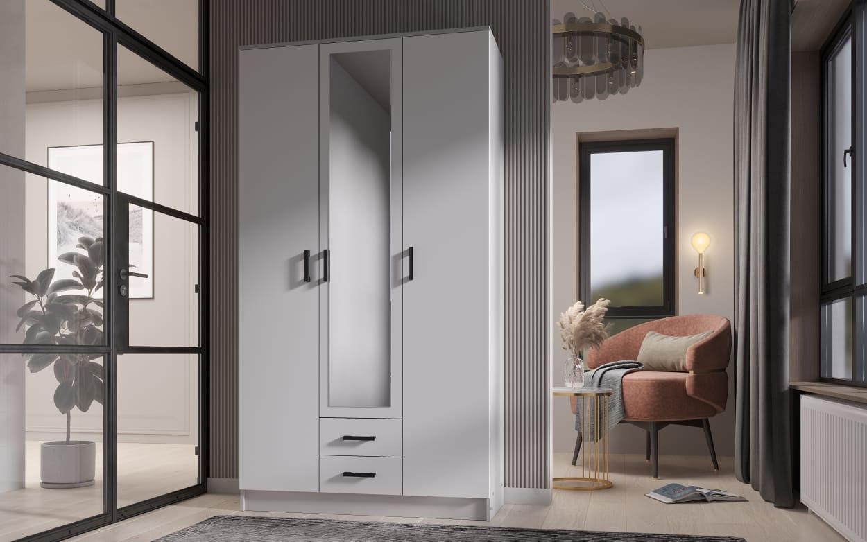 Шкаф ТРИО (З) производства мебельной фабрики ЭРА (Пенза) — это трехстворчатый распашной шкаф с зеркалом, выполненный в цвете «Белый гладкий». Модель отличается современным лаконичным дизайном и функциональным наполнением, подходящим для спальни или прихожей.