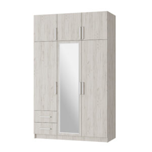 Центральная часть: 3 полки за дверью с зеркалом и 2 выдвижных ящика в нижней части.